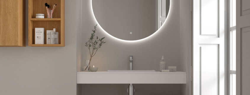 Mueble suspendido 1 cajón con tirador OLA en acabado madera natural R0 con encimera hidrófuga en bastidor con lavabo AVRIAN S6. Acompaña espejo redondo retro iluminado con módulos con estantes en pared en el mismo acabado de la madera R0 . La ya conocida colección ADVANCE, se convierte ahora en el SISTEM ADVANCE. 7 Diseño de frentes, posibilidad de fabricación a medida en maderas, laminados o laca (posibilidad de color personalizado), una amplia gama de complementos de espejos, encimeras, lavabos…Todo lo necesario para realizar el mueble que deseas.